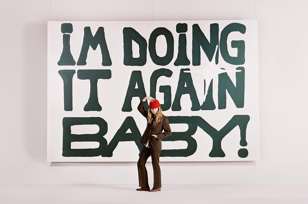 Though, where the first track gives self-assurance, the title track, “DOING IT AGAIN BABY” features a more sped-up experimental punk that emulates confidence, placing the singer at the public forefront as she adopts over-the-top personas. She sings, “Got those Japanese denim and loafers on my feet / Looking like a rockstar from the s-s-seventies.” This physical embodiment has her thinking, “I’m loving this new self-esteem / Like the one I had at seventeen.” The second half of the song finishes with a fast banjo that fits the thrilling new pride.