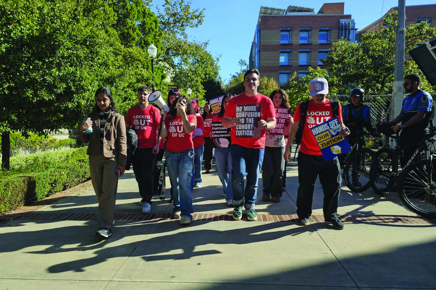 The tuition model has been faced with fierce opposition, mainly from UC Student Association (UCSA) as they’ve made multiple statements criticizing the proposal prior to its approval. In one such statement, they emphasized that such an increase in tuition and decrease in share for financial aid is “devastating and harmful” and urged the Board of Regents to reject the proposed 1% increase for capital improvements or dedicate them solely for student support as it is not appropriate to fund capital projects using tuition fees. Additionally, they organized a protest on the day of the Board meeting with slogans such as “no cuts, no fees, education should be free” and “hey hey, ho ho, tuition hikes have got to go.”