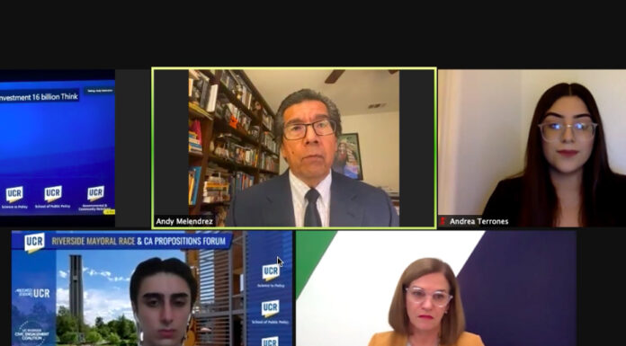 On Wednesday, Oct. 21 the UCR School of Public Policy hosted a town hall between Riverside mayoral candidates Patricia Lock Dawson and Andy Melendrez. The event was hosted in collaboration with ASUCR, the UCR Science to Policy program, the Civic Engagement Coalition and the UCR Office of Government and Community Relations.