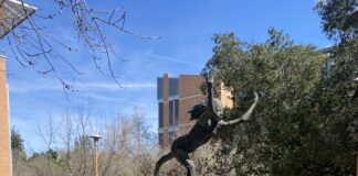 This statue of a dancing girl, located by Orbach library, was placed at the University of California, Riverside (UCR) in honor of the Children’s...